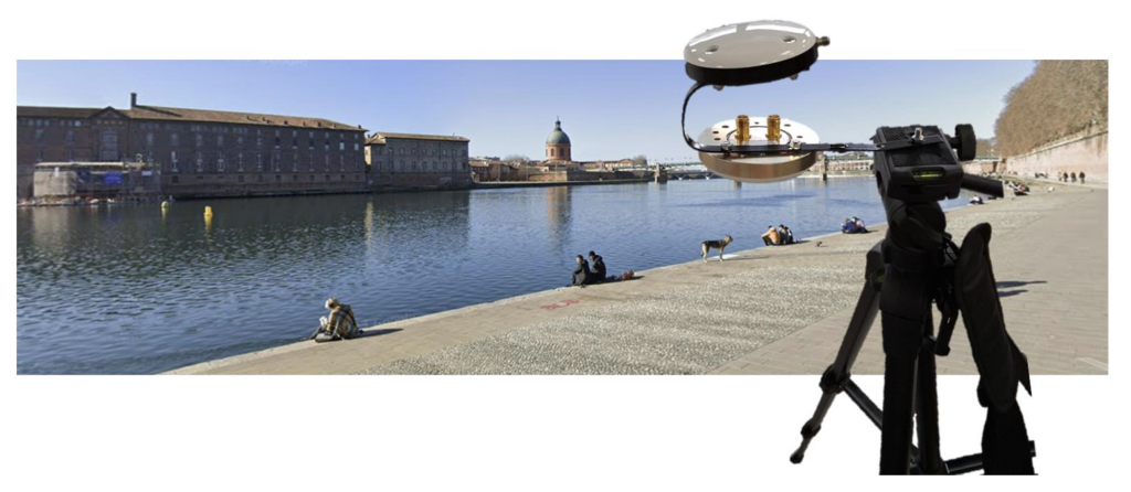 This simulated campaign constitutes the first step toward the overall objective of the activity, i.e. validating the method using real RF data. With the modelling framework established under controlled conditions, the next phase transitions to experimental verification in a sub-optimal, real-life environment. An on-site campaign will therefore be conducted on the Garonne river quay, where a specular reflection geometry will be targeted. Direct and reflected signals will be collected using two independent antennas, RHCP for the direct signal and LHCP for the reflected signal (Fig. 2). The signals will be recorded with an ECHO mini recorder (Fig. 1), digitized, and subsequently processed offline using a custom processing pipeline. This experiment will enable assessment of the proposed approach under realistic environmental conditions and confirm its applicability to fully independent GNSS-R altimetric configurations.
